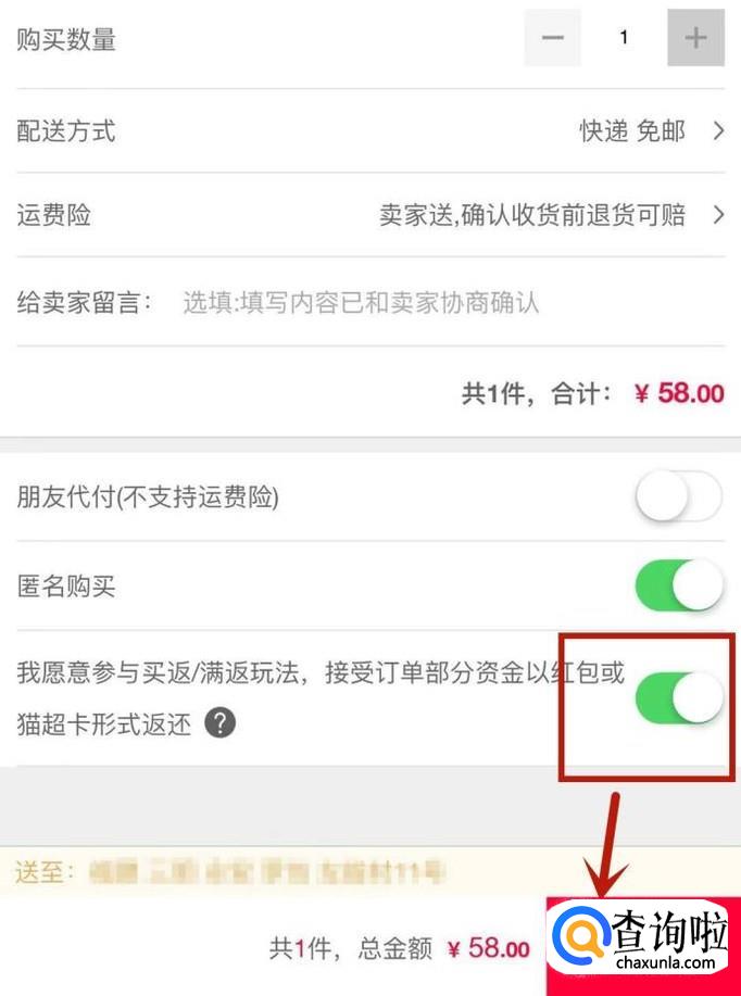 最后在淘宝上选择我们想要购买的商品,在付款界面开启红包开关,并点击提交订单就能够使用余额宝红包了。
