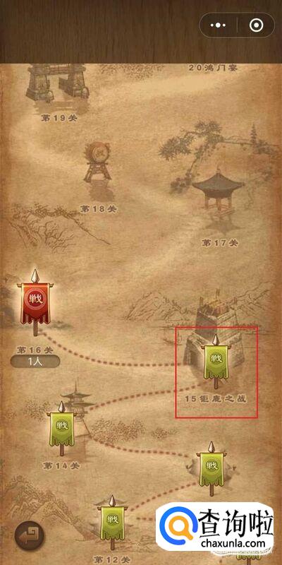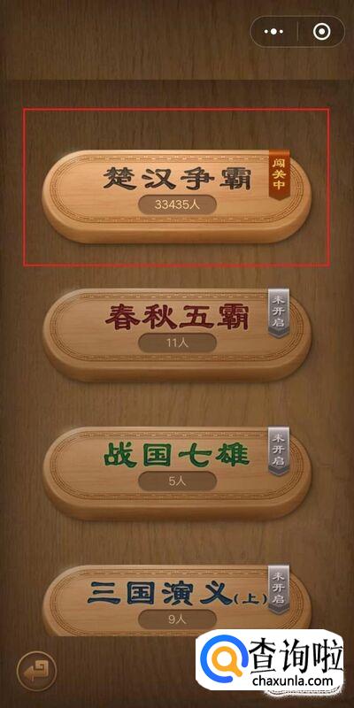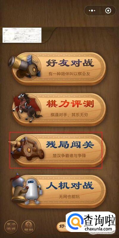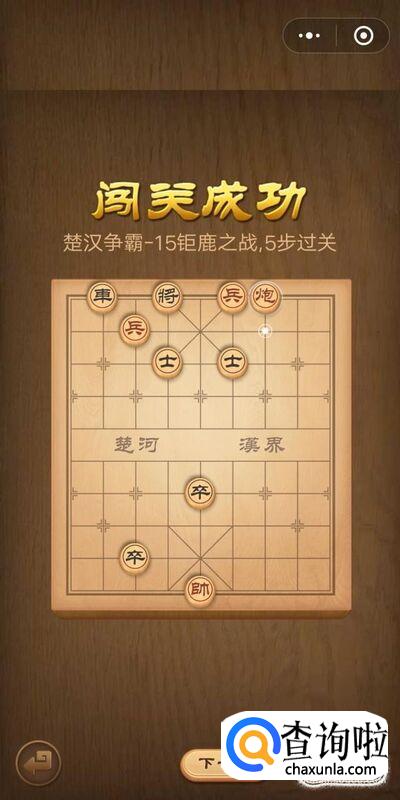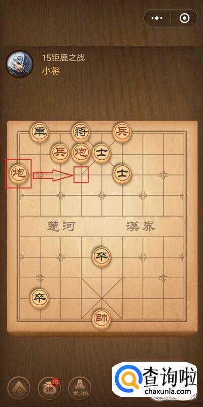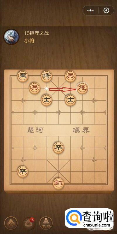 首先打开微信腾讯中国象棋——残局闯关——楚汉争霸——第15关钜鹿之战,如图所示