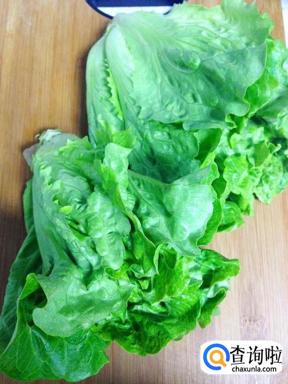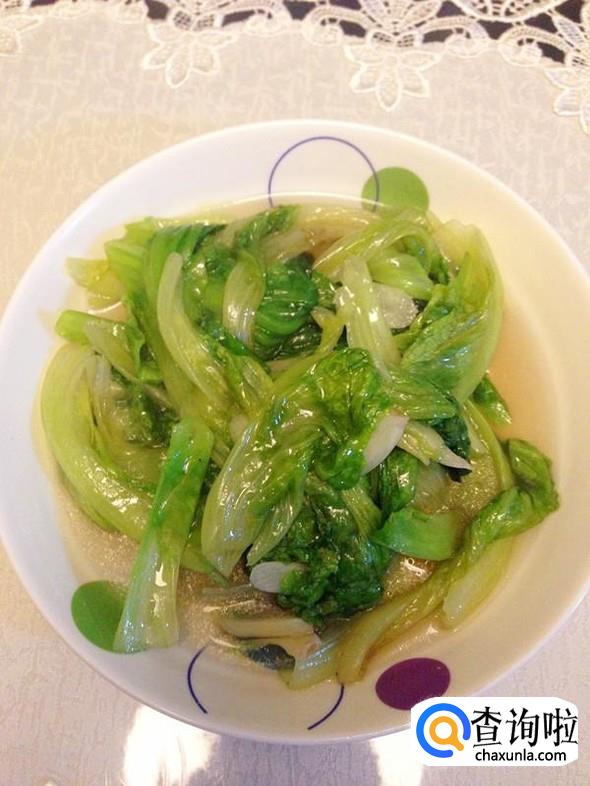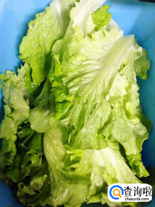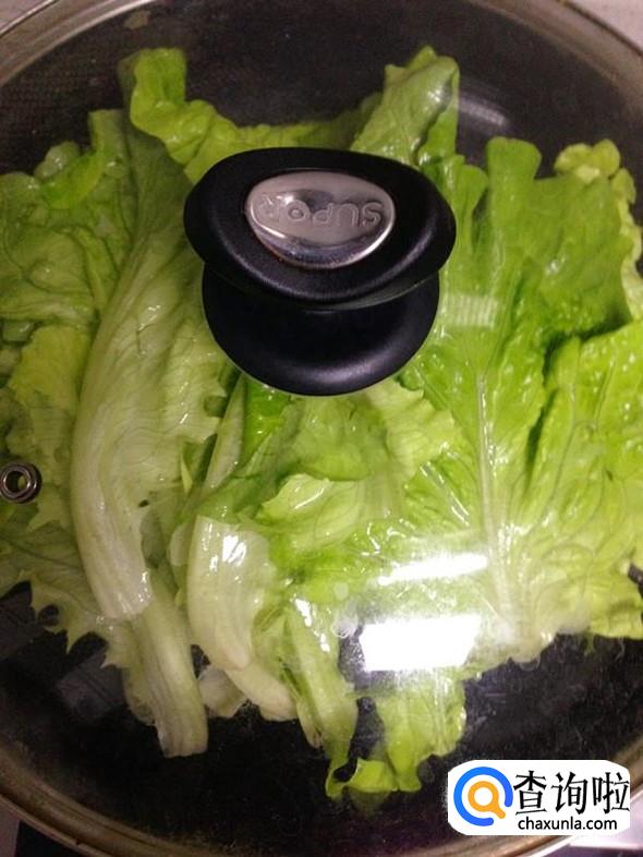 当锅盖上有很多水蒸气时,打开锅盖,把生菜轻轻地翻炒几下,并加入1小勺盐调味。