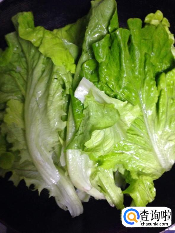 然后清洗干净的生菜也放入锅中,并加入1小勺食用油。