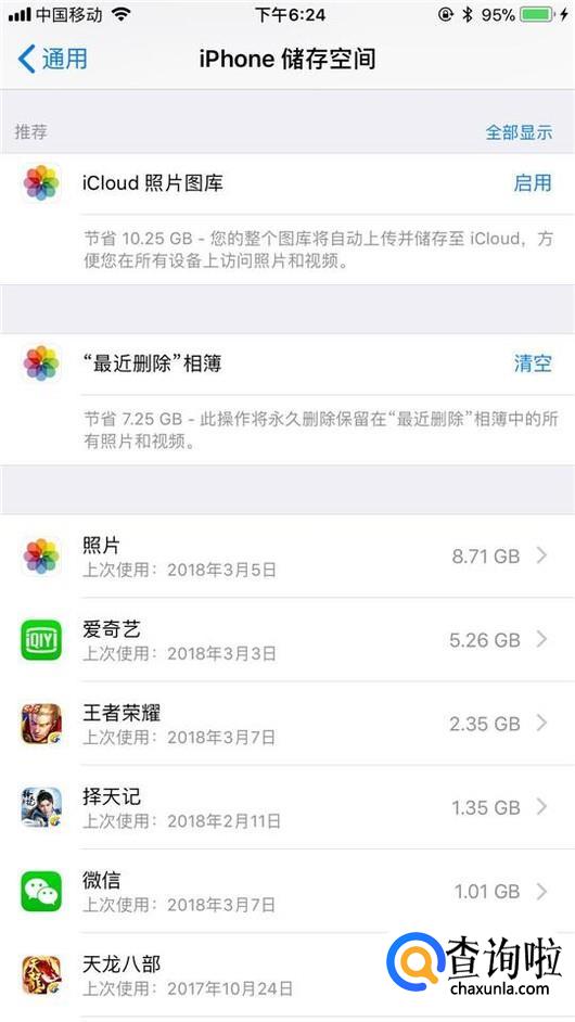 如果你的存储空间还是不够的话,建议把微信和其他视频app中的缓存清理一下,也是能够腾出一些存储空间的。