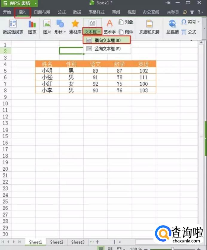 然后点击“文本框”的下拉按钮在弹出的下拉菜单中选择“横向文本”的命令。