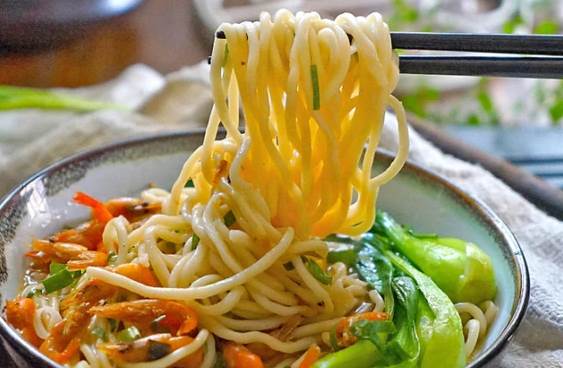 面条是一种主食,具有高饱腹感,可为人体提供足够能量物质。因它的原材料是小麦,因而还富含丰富的维生素B,能刺激脑部细胞活跃性,提高脑部运转,适合为下午的工作和学习做铺垫。