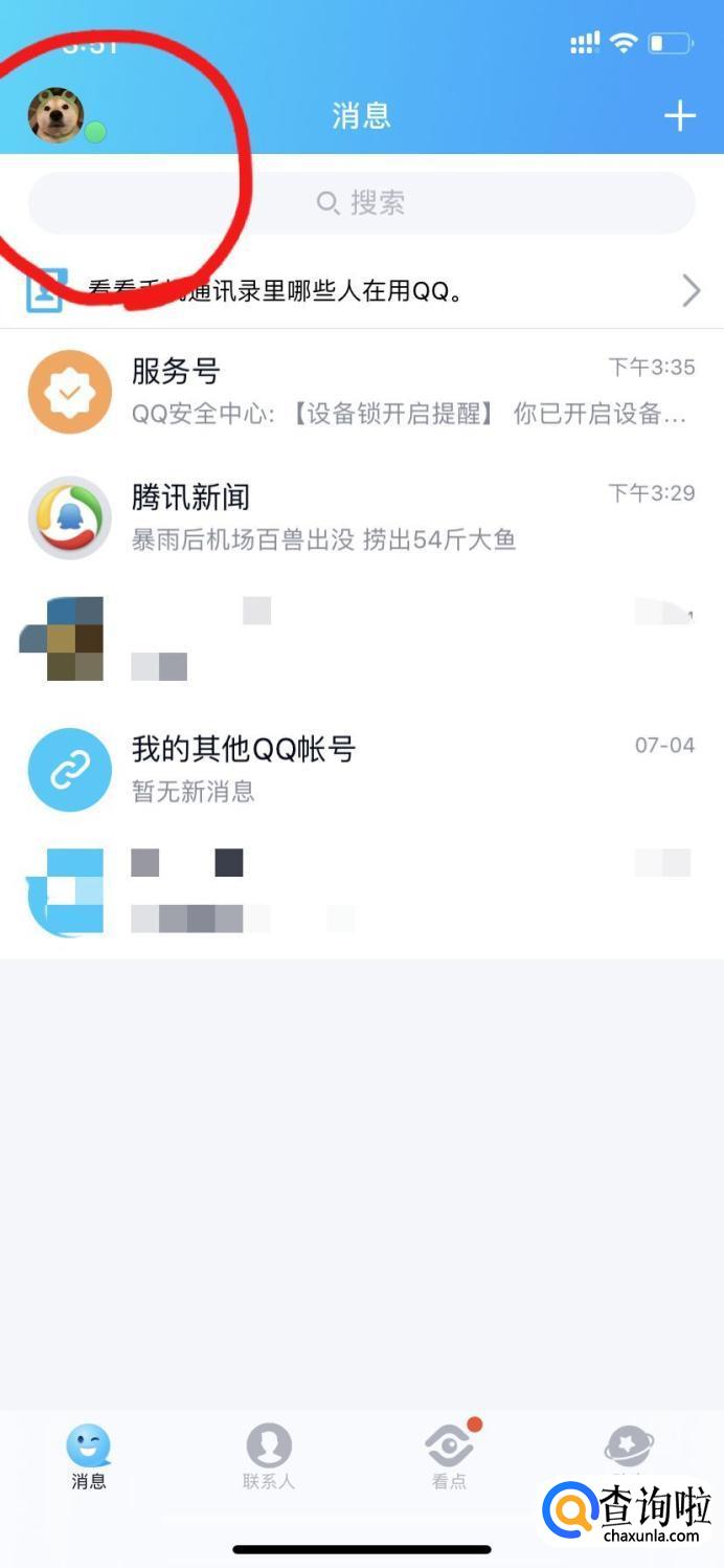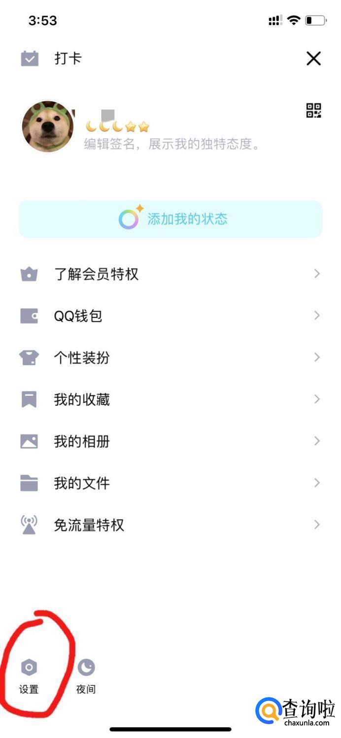 打开QQ,点击右上角头像,进入详情页面。