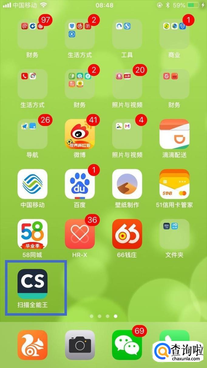 首先在我们的手机桌面上找到全能扫描王并点击它,如下图所示。