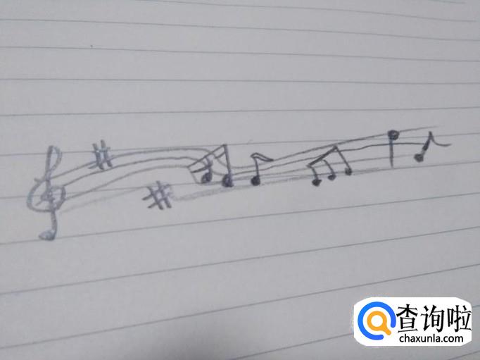 最后在曲线上加上平时常用到的音符就可以了,音符的简笔画就完成了。