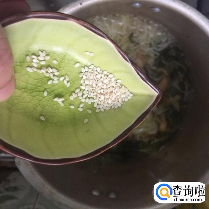 接着往锅中撒入适量的芝麻,如下图所示。