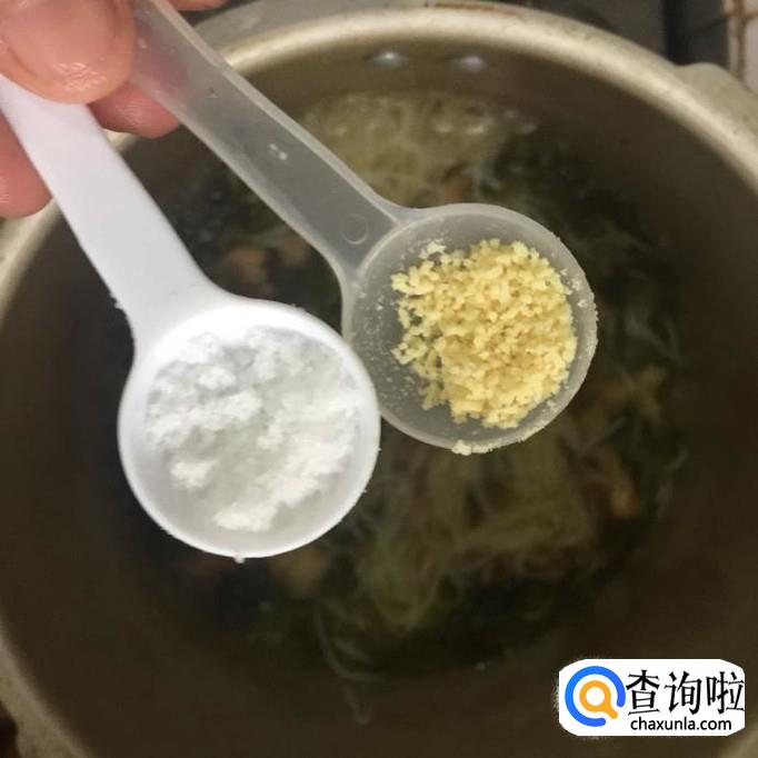 然后往锅中加入适量的盐巴和味精,如下图所示。