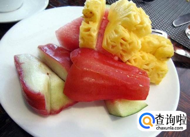 莲雾2个洗净,切片,在盐水中浸泡,与小黄瓜、红萝卜片同炒即成。此菜减肥瘦身。
