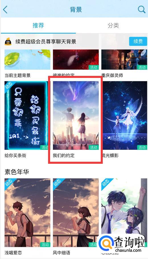 在新弹出的背景页中,选择并点击你喜欢的背景图片,此处以“我们的约定”为例。