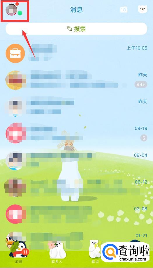 打开QQ,点击左上角的头像。