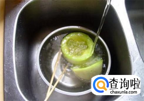 蒸熟之后赶紧拿出来放进冷水中浸泡,这样搅瓜吃起来口感才好,浸泡五分钟之后捞出来,用勺子把里面的丝挖出来用清水冲一下控干水分。