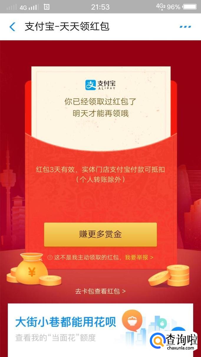 目前,领到的红包是随机的,花呗或者余额宝的都有,支付时可以抵扣现金使用,有效期是三天。