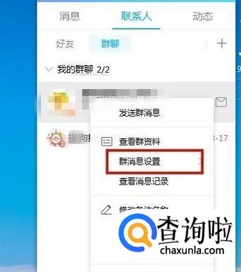 接着右击一个QQ群并点击群消息设置,如下图所示。