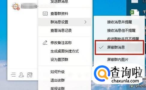 然后点击群屏蔽消息,如下图所示。
