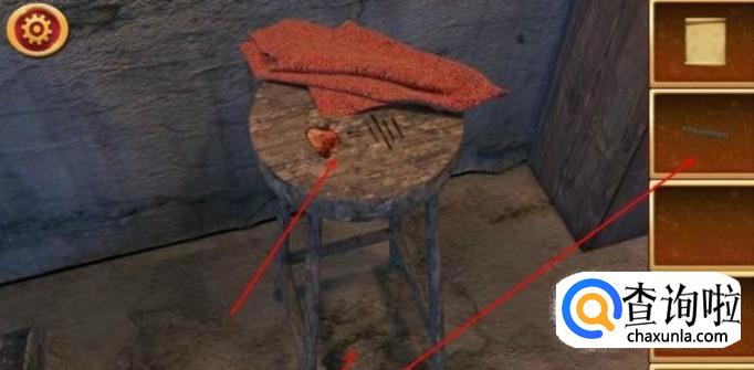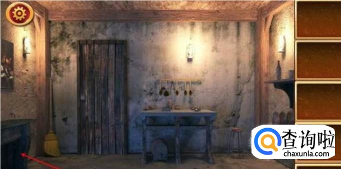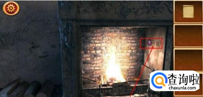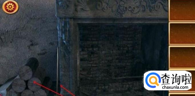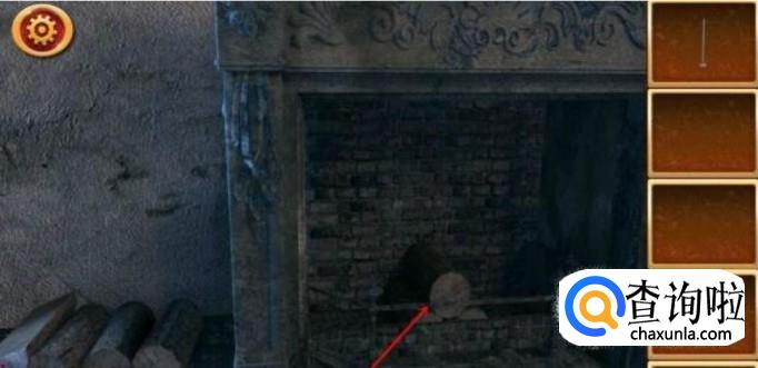 在房间的左下角有一个壁炉,点击壁炉,会得到一个铁锤。在壁炉旁边有你可以看到一堆干木头,拖动木头,将它们放进壁炉中
