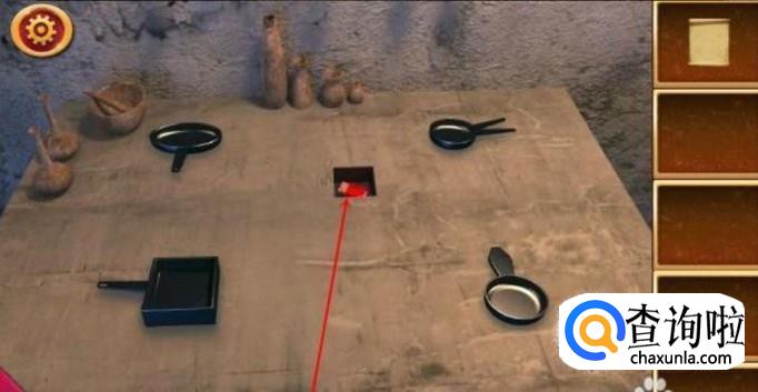 房间的正前方有一个桌子,点击桌子。按照刚刚得到的提示,将桌子上的餐具按剪头方向摆好。摆放好后,桌子的中央会出现一个空洞,拿出里面的火柴。