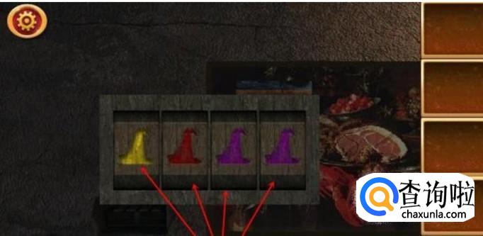 点击右边框框里的火柴,將壁炉里的木头点燃。当木头点燃后,火光会照亮壁炉内测,你会发现一个提示。葡萄代表紫色,即紫色等于4