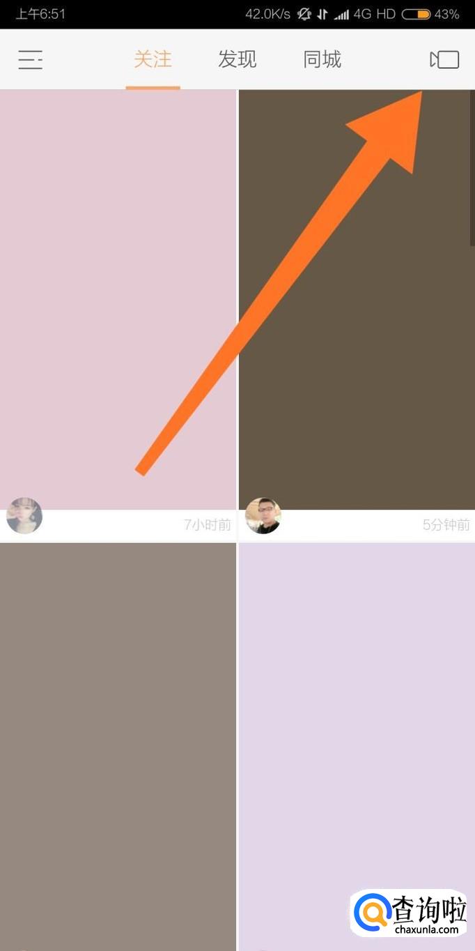 我们首先进入快手,点击屏幕右上角的摄像头图标。
