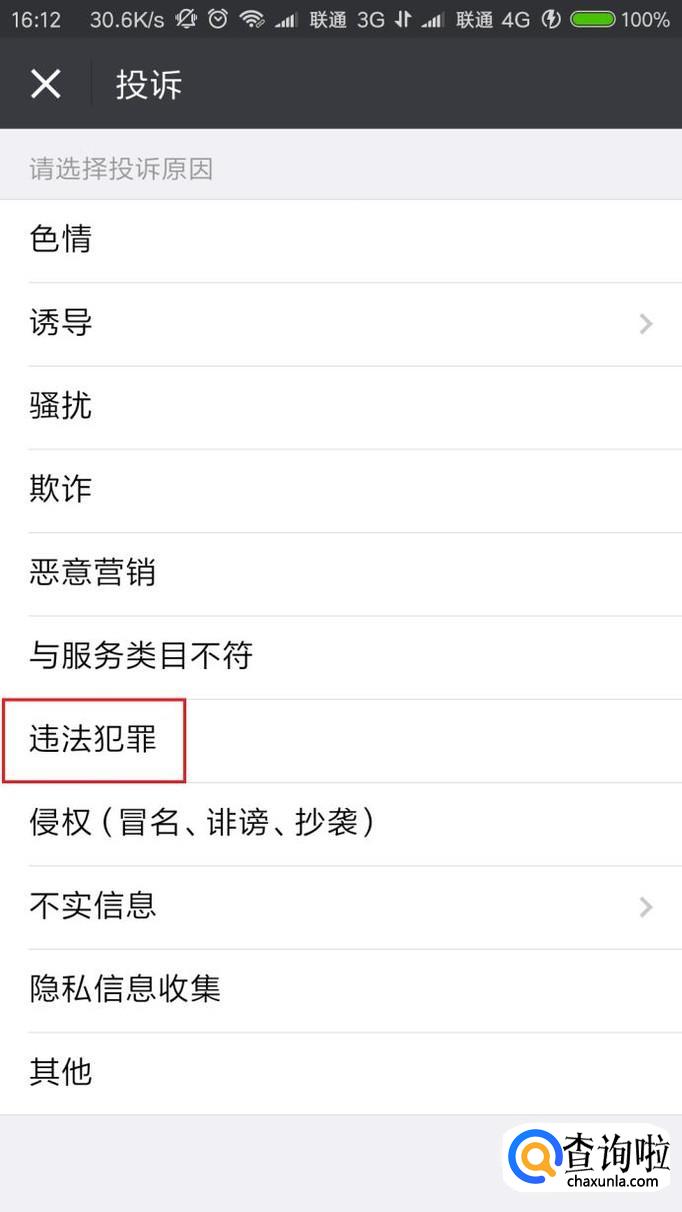 接下来,将进入投诉理由选择页面,在该页面中视该小程序的违规情况进行选择,比如说这里可以选择其违反了相关法律法规。