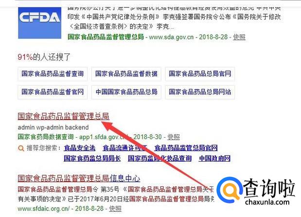 进入之后,搜索“国家食品药品监督管理总局”,点击搜索结果并进入,如图所示。