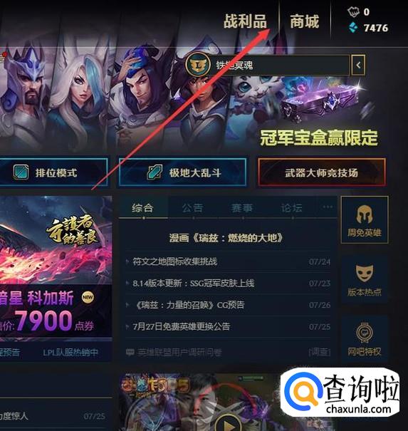 然后找到战利品,如下图,然后点击进入。