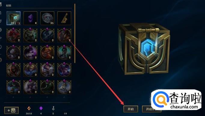进入之后找到材料,当然我的英雄魔法引擎已被我使用了,一般你升级或者活动的时候都会给你的,你点击开启就可以了,我现在以海克斯宝箱为例子。