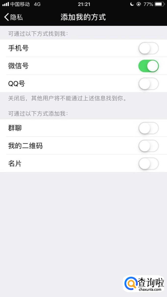 在这个界面我们可以添加别人可以添加我为好友的方式。