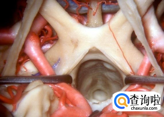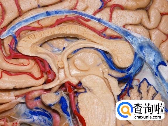在这个大脑切面图中,可以清楚地看到被血管包围着的脑垂体。脑垂体负责产生荷尔蒙,而且脑垂体是一个非常重要的腺体,被称为是8大腺体的总司令。脑部直接刺激这个腺体,产生各种不同的荷尔蒙,如传达荷尔蒙的“消息”到所有身体下方的其它腺 体,指挥它们执行各种不同的任务。脑垂体控制身体 许多活动,例如腺体分泌等,当脑垂体功能失常时,会产生许多疾病。
