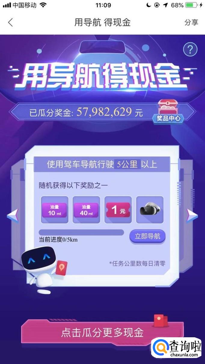 最后点击开始导航就可以了。等到导航到一定的公里数就会有红包可以领取了。