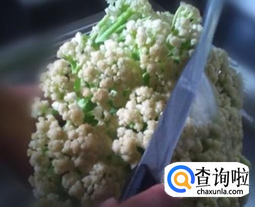 接下来就需要把菜花上面的虫子等东西,全部用小刀慢慢的给去除掉。