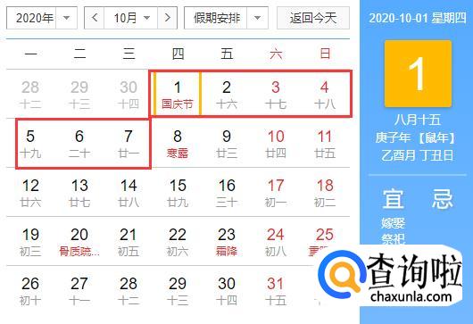 2020年中秋国庆节高速免费时间:10月1日,00:00—10月7日24:00,共7天。