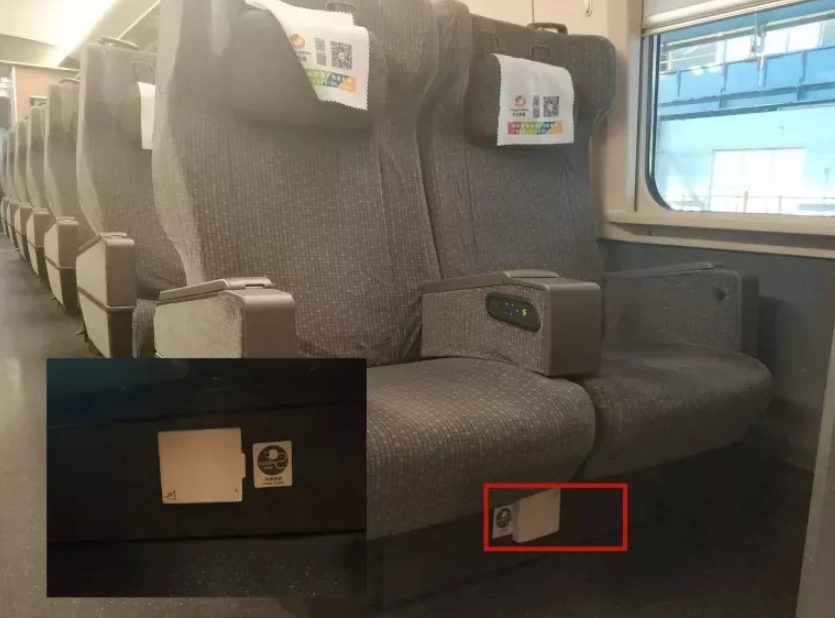 有些车次的充电插座是位于自己座位的下方,座椅板之下,要低下头找才可以发现这个插头。充电插头都是国标三口和两口都支持,如果是美标之类的就要自己准备充电转换设备了。