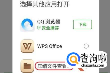 然后在选择其他应用打开窗口,勾选其中的“压缩文件查看器”即可,图二就是解压之后的文件夹;