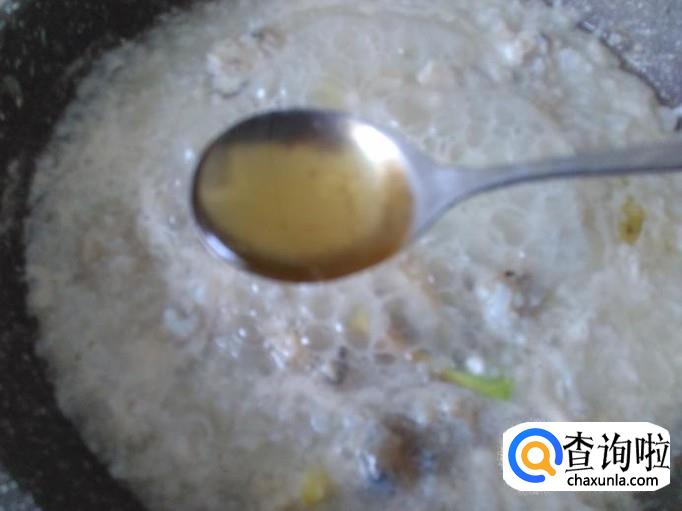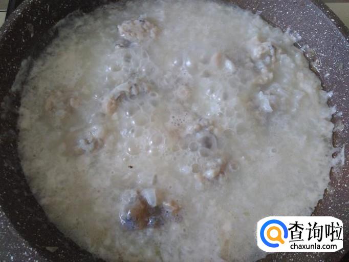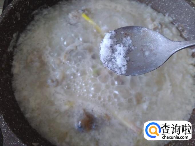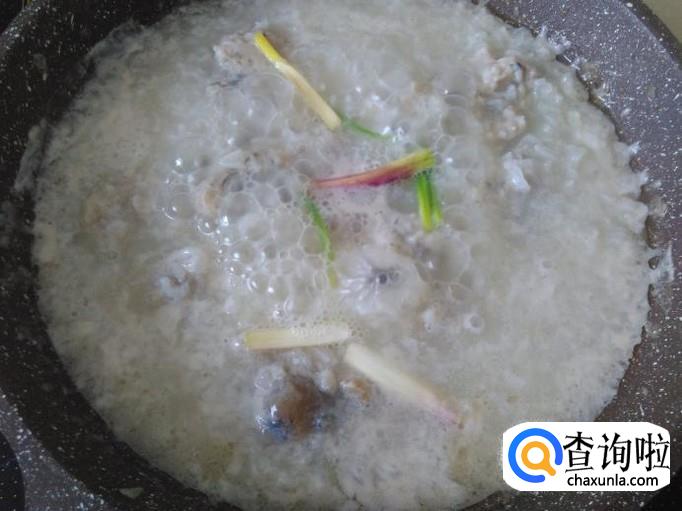 炖到汤水变成奶白色后,把鱼骨和姜片捞上来。