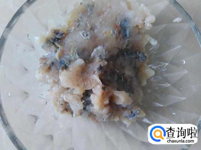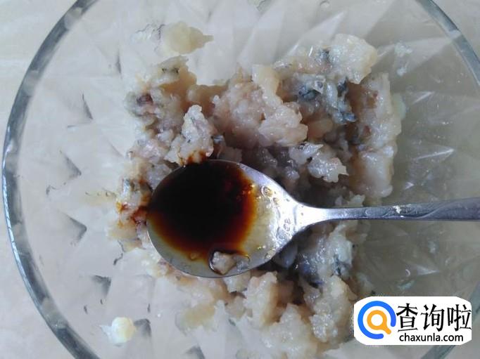 1勺生抽,搅拌倒鱼肉很粘为止。