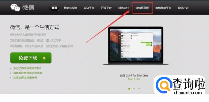 在官方网站中点选网页顶部的“微信网页版”。
