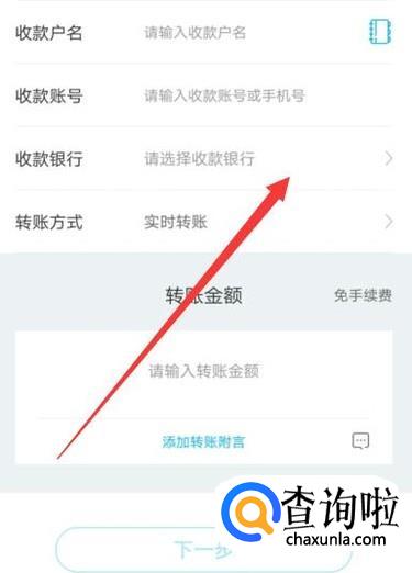 进入之后,选择其他银行,点击一下即可,返回上一页面填写转账资料,点击下一步完成转账即可,如图所示。