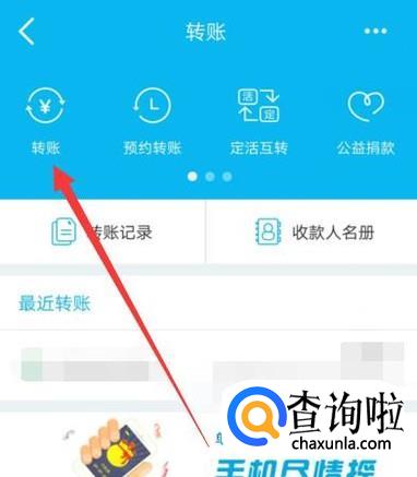 进入之后,点击“转账”,进入下一页面,如图所示。