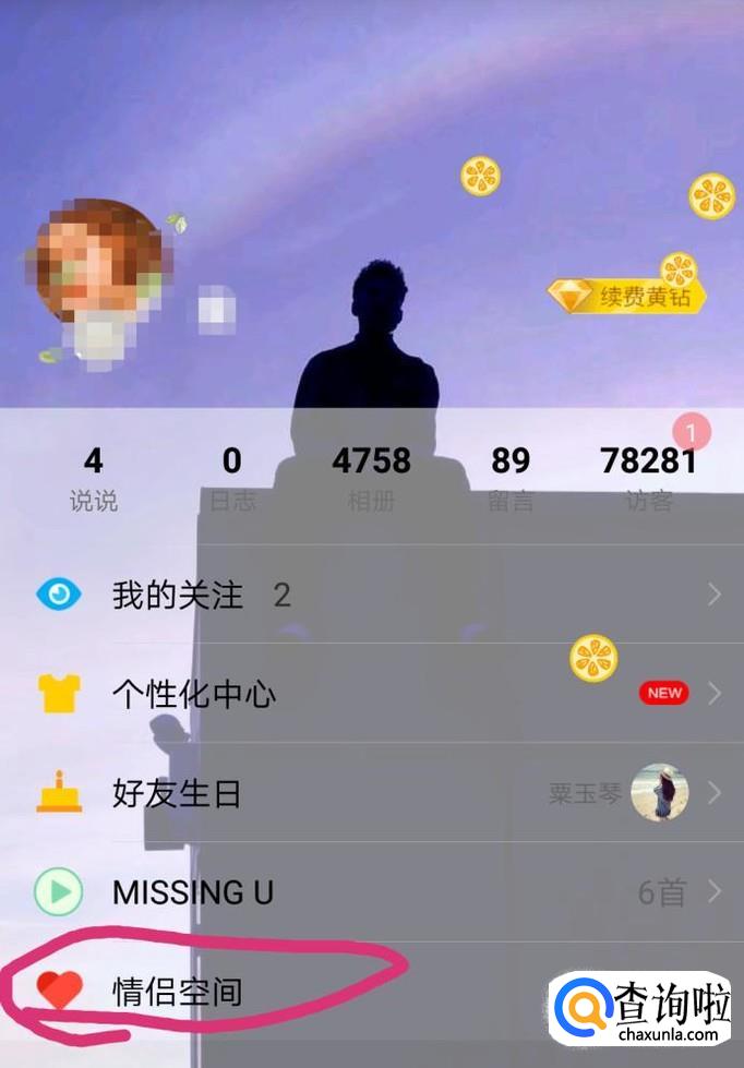 在下方有一个情侣空间,点击进入