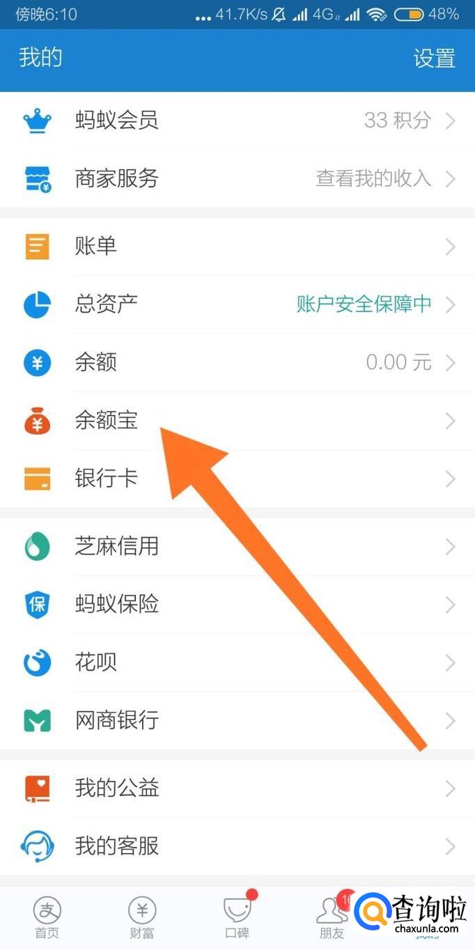 然后点击进入“余额宝”选项。