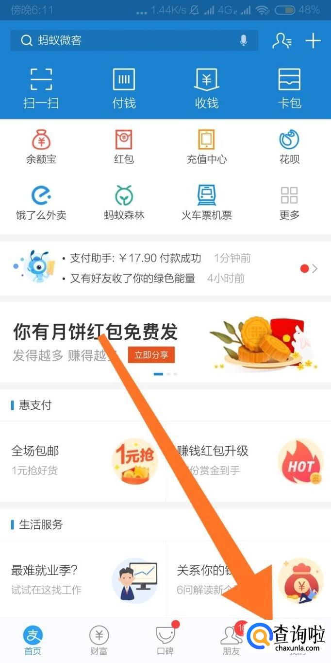 首先点击进入支付宝页面“我的”。
