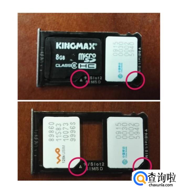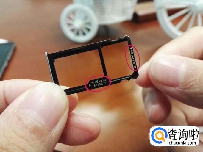 看清卡托的设置。如图所示,右手边的是内卡槽,可以放Nano-SIM卡,也就是迷你SIM卡。左手边的卡槽叫外卡槽,可以放Nano-SIM卡,也可以放内存卡。
