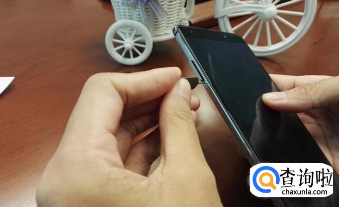 在关机状态下,用买手机时附送的卡针插入卡托的小孔中,轻轻按压,卡托就会自己弹出来了。