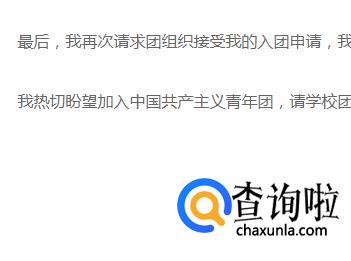在写完正文后,可重起一行,将此次的请求再次强调一下,如我无比热切的希望能够加入共青团,成为其中的一份子,望团组织仔细考虑等。