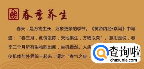 春天是一个新陈代谢特别快的季节,这时候养气,气色会很好。那么要怎么养气呢?春季肝阳亢盛,不宜情绪波动大,要做到心胸开阔,身心和谐;春天人的肝脏阳气旺盛,饮食方面最好吃甘甜之物,如山药、春笋、菠菜、大枣、韭菜等。