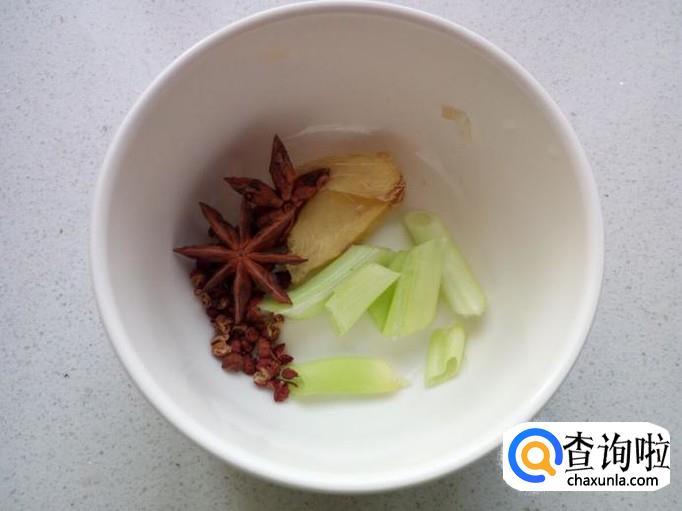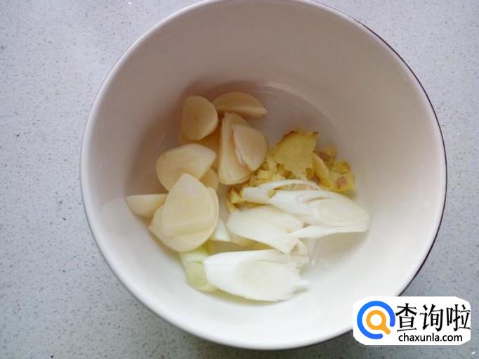 切好葱,姜,准备好花椒,八角,用作炖脊骨用。