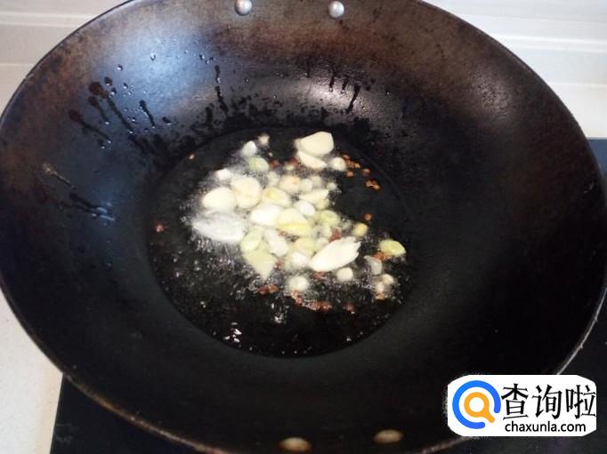 锅内放入油加热,油热后放入花椒,葱,姜,蒜,爆锅,放入芸豆翻炒。