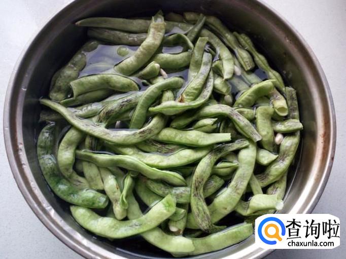 芸豆摘干净,放入清水中浸泡一下,然后用水清洗干净,控干水分,备用。