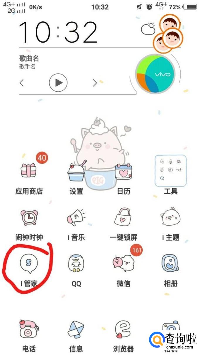 首先,选择点击打开手机自带的i管家软件(此处以vivo为例),也可以打开自己下载的手机管家等。